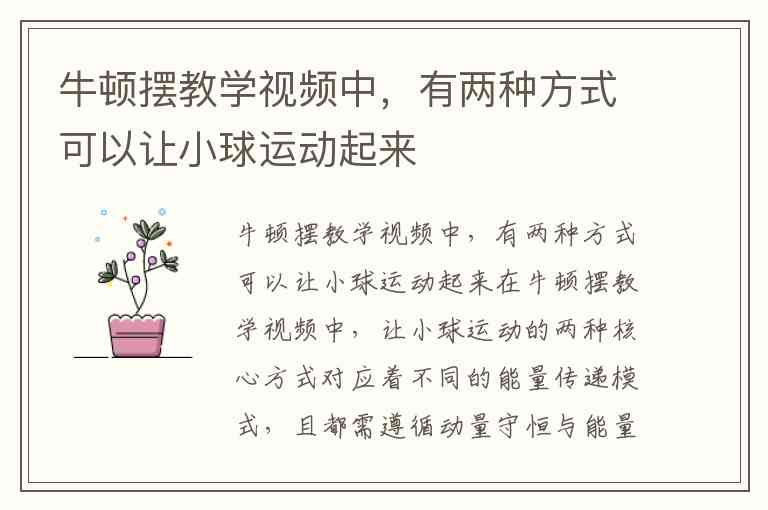 牛顿摆教学视频中,有两种方式可以让小球运动起来