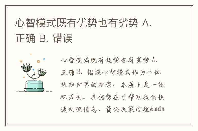 心智模式既有优势也有劣势 A. 正确 B. 错误