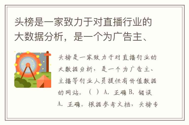 头榜是一家致力于对直播行业的大数据分析,是一个为广告主、主播等行业人员提供有价值数据的网站。( ) A. 正确 B. 错误