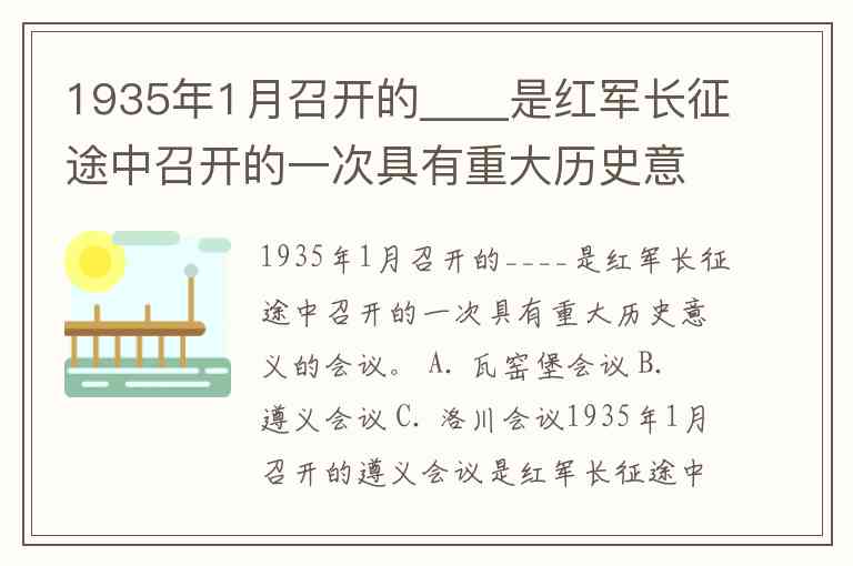 1935年1月召开的____是红军长征途中召开的一次具有重大历史意义的会议。 A. 瓦窑堡会议 B. 遵义会议 C. 洛川会议