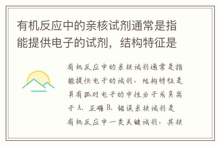 有机反应中的亲核试剂通常是指能提供电子的试剂,结构特征是具有孤对电子的中性分子或负离子 A. 正确 B. 错误
