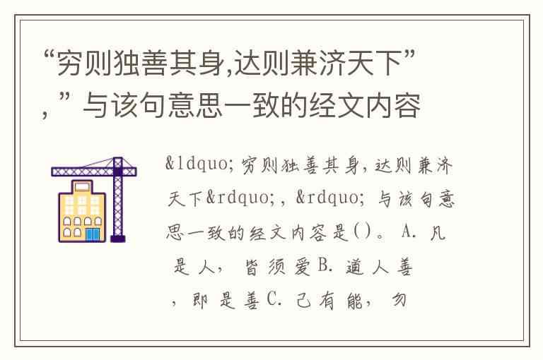 “穷则独善其身,达则兼济天下”, ” 与该句意思一致的经文内容是( )。 A. 凡 是 人, 皆 须 爱 B. 道 人 善 ,即 是 善 C. 己 有 能, 勿 自 私 D. 与 宜 多 ,取 宜 少