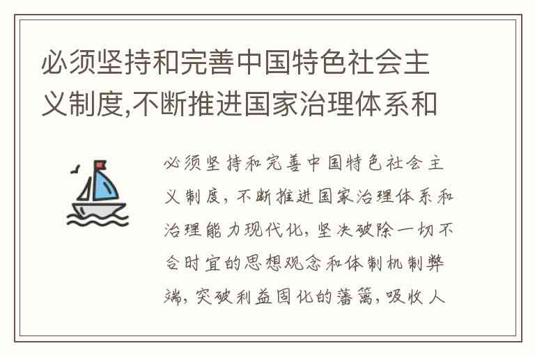 构建中国特色社会主义制度体系是推进国家治理现代化的核心任务。党的十九届四中全会明确提出,要"着力固根基、扬优势、补短板、强弱项,构建系统完备、科学规范、运行有效的制度体系",这三个特征既各有侧重又相互支撑,共同构成中国特色社会主义制度的显著优势。