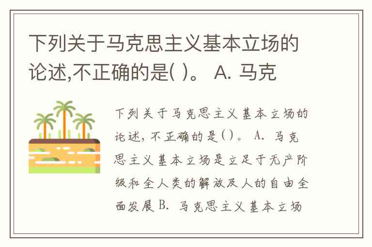 下列关于马克思主义基本立场的论述,不正确的是( )。 A. 马克思主义基本立场是立足于无产阶级和全人类的解放及人的自由全面发展 B. 马克思主义基本立场是马克思主义观察、分析和解决问题的出发点 C. 马克思主义基本立场是以人民为中心,一切为了人民,一切依靠人民 D. 马克思主义的基本立场就是保持价值中立,坚持科学的原则和立场