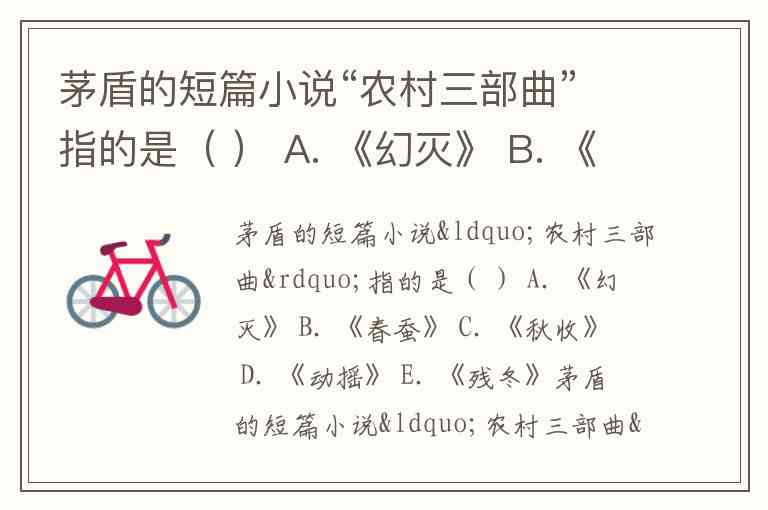 茅盾的短篇小说“农村三部曲”指的是( ) A. 《幻灭》 B. 《春蚕》 C. 《秋收》 D. 《动摇》 E. 《残冬》