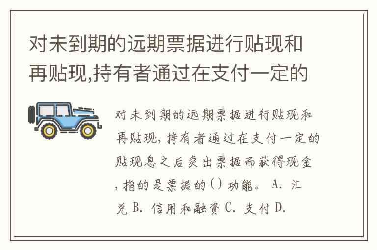 对未到期的远期票据进行贴现和再贴现,持有者通过在支付一定的贴现息之后卖出票据而获得现金,指的是票据的( )功能。 A. 汇兑 B. 信用和融资 C. 支付 D. 提示