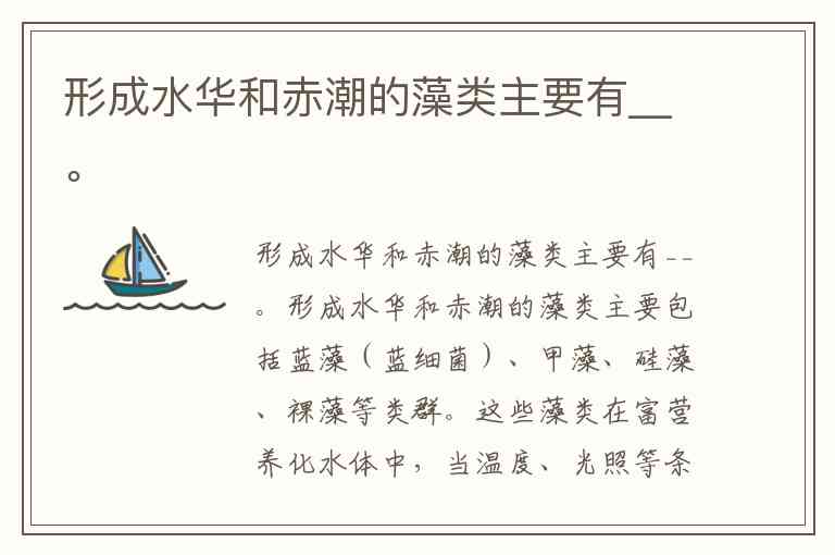 形成水华和赤潮的藻类主要包括蓝藻(蓝细菌)、甲藻、硅藻、裸藻等类群。这些藻类在富营养化水体中,当温度、光照等条件适宜时会爆发性增殖,导致水体变色并破坏生态平衡。
