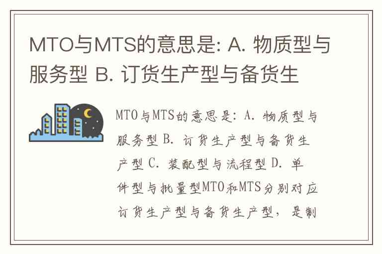 MTO与MTS的意思是: A. 物质型与服务型 B. 订货生产型与备货生产型 C. 装配型与流程型 D. 单件型与批量型