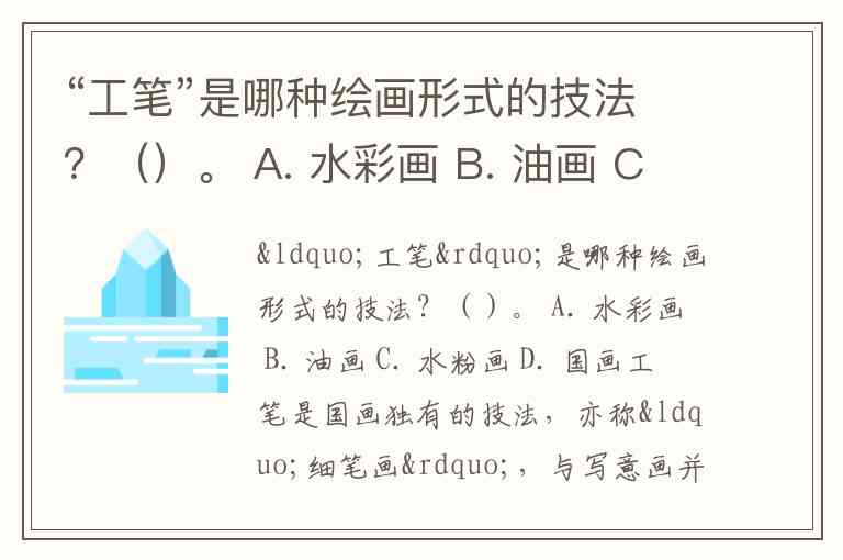“工笔”是哪种绘画形式的技法?()。 A. 水彩画 B. 油画 C. 水粉画 D. 国画