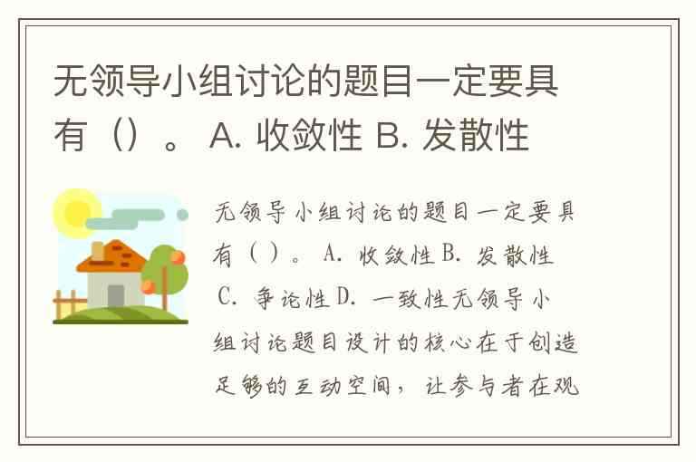 无领导小组讨论的题目一定要具有()。 A. 收敛性 B. 发散性 C. 争论性 D. 一致性