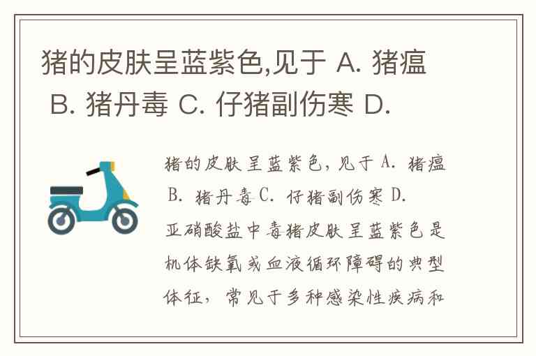 结论:若仅以“皮肤蓝紫色”为核心症状,猪瘟(A)、猪丹毒(B)和亚硝酸盐中毒(D) 均可能符合,但需结合其他特征鉴别: