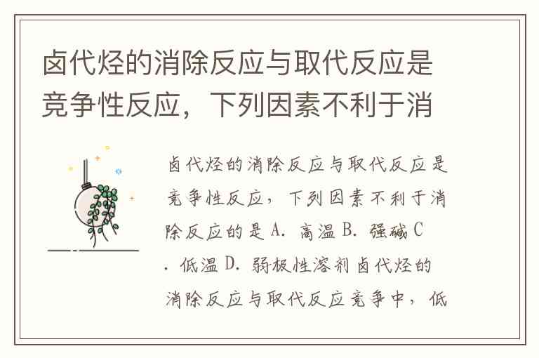 卤代烃的消除反应与取代反应是竞争性反应,下列因素不利于消除反应的是 A. 高温 B. 强碱 C. 低温 D. 弱极性溶剂