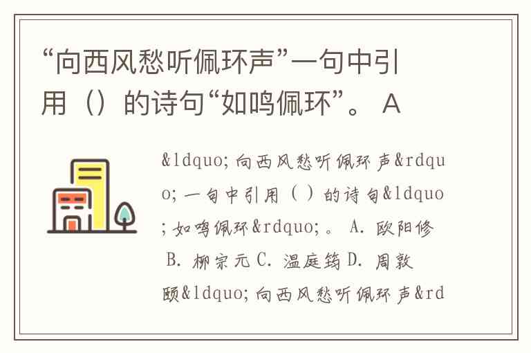 “向西风愁听佩环声”一句中引用()的诗句“如鸣佩环”。 A. 欧阳修 B. 柳宗元 C. 温庭筠 D. 周敦颐