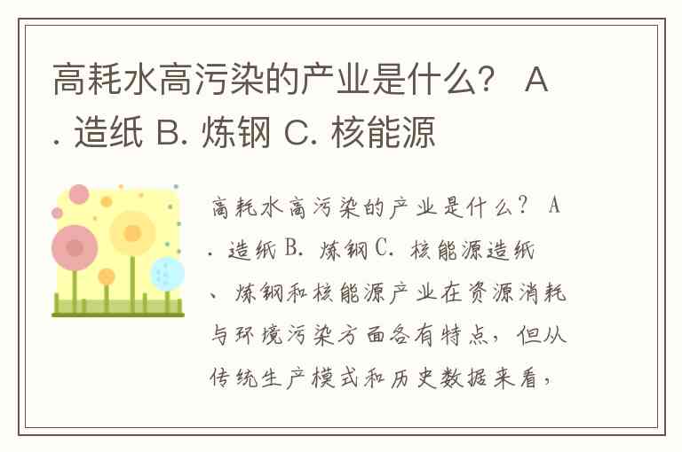 高耗水高污染的产业是什么? A. 造纸 B. 炼钢 C. 核能源