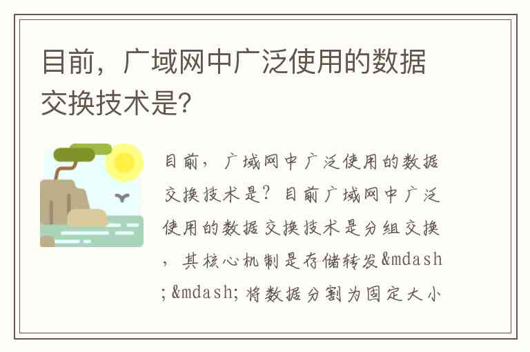目前,广域网中广泛使用的数据交换技术是?