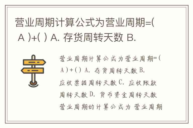 营业周期计算公式为营业周期=( A )+( ) A. 存货周转天数 B. 应收票据周转天数 C. 应收账款周转天数 D. 货币资金周转天数