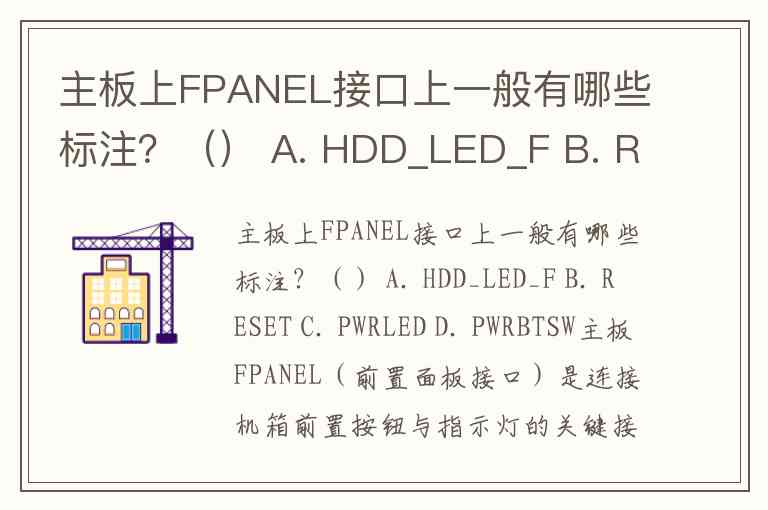 本题选项中,B(RESET)、C(PWRLED)、D(PWRBTSW) 均为FPANEL区域的标准标注,而A选项的HDD_LED_F并非行业通用标识(标准标注为HDD_LED或HD)。实际装机时建议优先参考主板说明书,不同品牌可能存在如PW_ON(替代PWRBTSW)等等效标注,但核心功能逻辑保持一致。