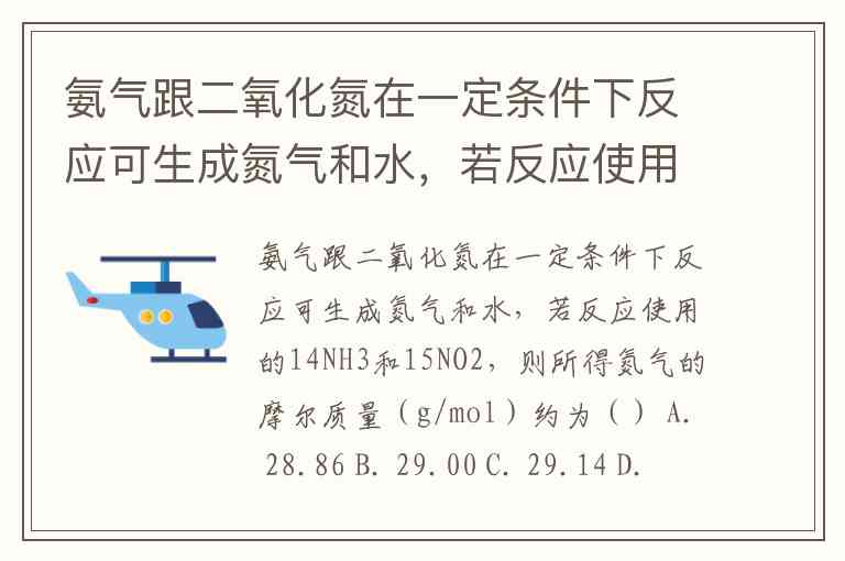 氨气跟二氧化氮在一定条件下反应可生成氮气和水,若反应使用的14NH3和15NO2,则所得氮气的摩尔质量(g/mol)约为() A. 28.86 B. 29.00 C. 29.14 D. 29.60