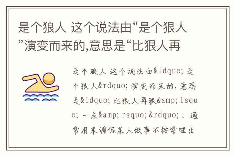是中文网络用语“是个狼人”的字面翻译,源于“是个狠人”的变体,表示“比狠人再狠‘一点’”,用于调侃某人做事不按常理却效果显著,如完成看似不可能的任务。这一表达无直接对应英文词汇,需结合语境意译为 "badass" 或 "impressively tough/skilled"。