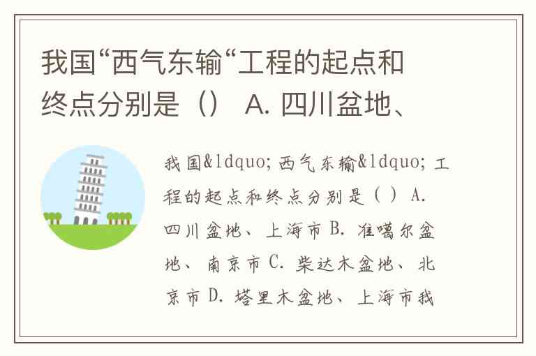 我国“西气东输“工程的起点和终点分别是() A. 四川盆地、上海市 B. 准噶尔盆地、南京市 C. 柴达木盆地、北京市 D. 塔里木盆地、上海市