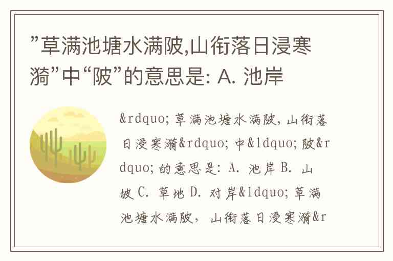 ”草满池塘水满陂,山衔落日浸寒漪”中“陂”的意思是: A. 池岸 B. 山坡 C. 草地 D. 对岸