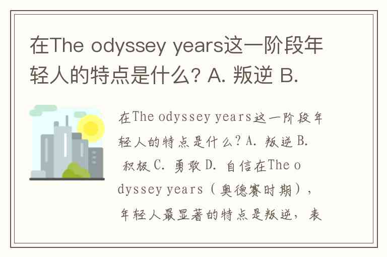 在The odyssey years这一阶段年轻人的特点是什么? A. 叛逆 B. 积极 C. 勇敢 D. 自信