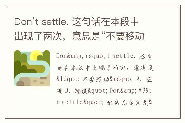 Don’t settle. 这句话在本段中出现了两次,意思是“不要移动” A. 正确 B. 错误