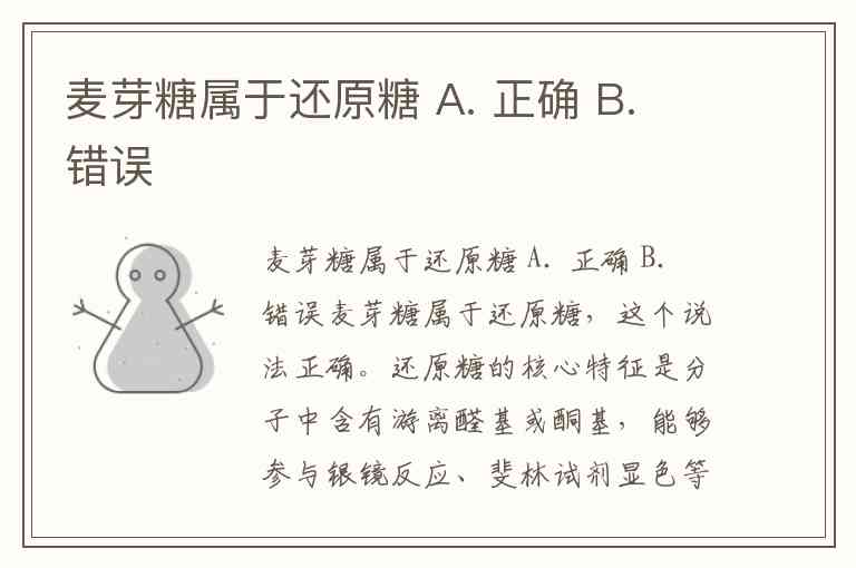 综上,麦芽糖因分子中存在游离醛基,完全符合还原糖的定义和化学行为特征。答案选A。思考一下:如果将麦芽糖水解为两分子葡萄糖,产物的还原性会发生怎样的变化?