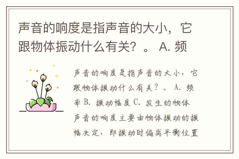 声音的响度是指声音的大小,它跟物体振动什么有关?。 A. 频率 B. 振动幅度 C. 发生的物体
