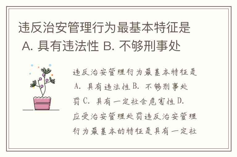 违反治安管理行为最基本特征是 A. 具有违法性 B. 不够刑事处罚 C. 具有一定社会危害性 D. 应受治安管理处罚