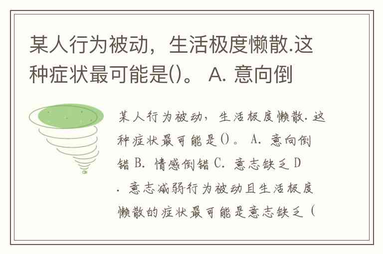 某人行为被动,生活极度懒散.这种症状最可能是()。 A. 意向倒错 B. 情感倒错 C. 意志缺乏 D. 意志减弱