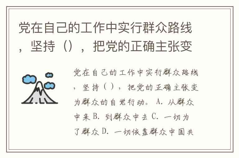 党在自己的工作中实行群众路线,坚持(),把党的正确主张变为群众的自觉行动。 A. 从群众中来 B. 到群众中去 C. 一切为了群众 D. 一切依靠群众