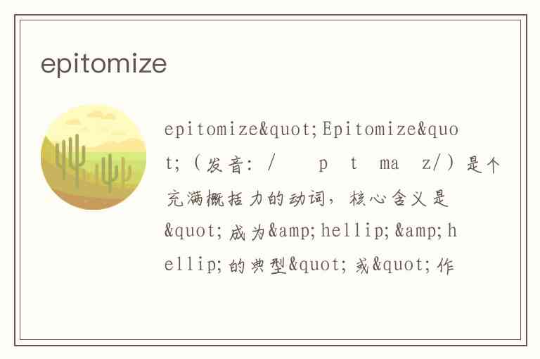 "Epitomize"(发音:/ɪˈpɪtəmaɪz/)是个充满概括力的动词,核心含义是"成为……的典型"或"作为……的缩影",强调通过个别事物集中体现整体特征。它像一把精准的手术刀,能从复杂现象中提炼出最本质的代表。
