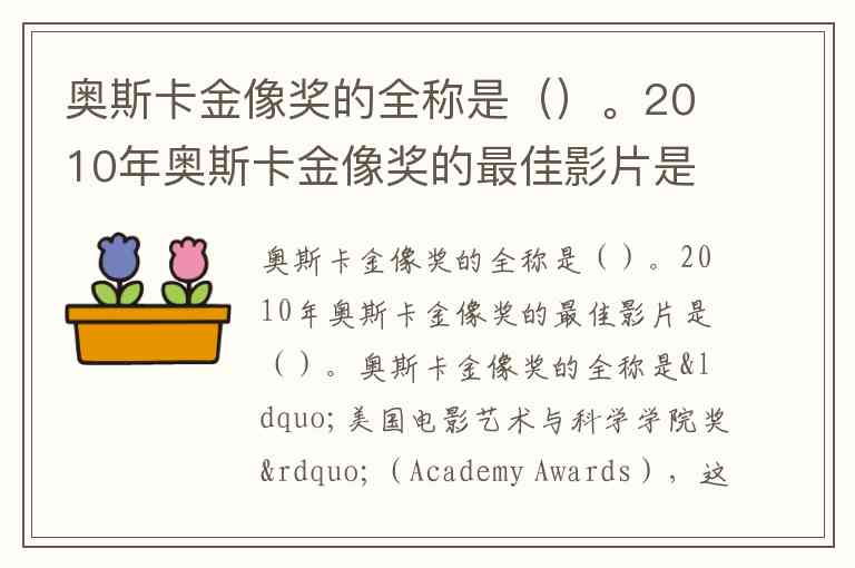 奥斯卡金像奖的全称是()。2010年奥斯卡金像奖的最佳影片是()。