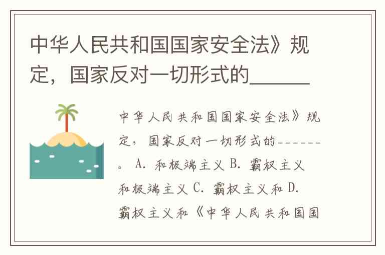 中华人民共和国国家安全法》规定,国家反对一切形式的______。 A. 和极端主义 B. 霸权主义和极端主义 C. 霸权主义和 D. 霸权主义和