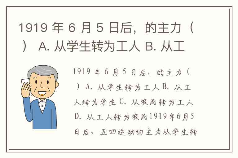 1919 年 6 月 5 日后,的主力( ) A. 从学生转为工人 B. 从工人转为学生 C. 从农民转为工人 D. 从工人转为农民