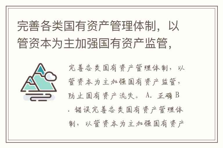 完善各类国有资产管理体制,以管资本为主加强国有资产监管,防止国有资产流失。 A. 正确 B. 错误