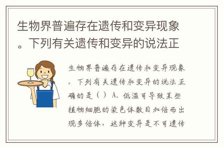 生物界普遍存在遗传和变异现象。下列有关遗传和变异的说法正确的是() A. 低温可导致某些植物细胞的染色体数目加倍而出现多倍体,这种变异是不可遗传的 B. “一母生九子,连母十个样”,这是遗传现象 C. 一对右利手的夫妇,生了一个左撇子的小孩,则左撇子为隐性性状 D. 近亲结婚生下的后代一定会出现遗传病