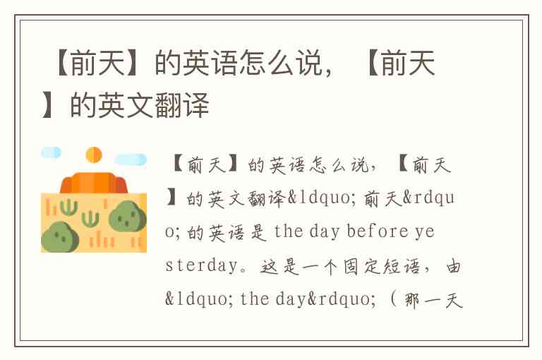英语中没有像“昨天”(yesterday)、“今天”(today)、“明天”(tomorrow)这样的单个单词来表示“前天”,因此需要用这种短语形式表达。类似地,“后天”则是 the day after tomorrow。