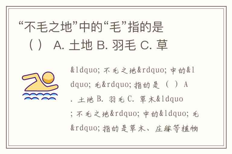 “不毛之地”中的“毛”指的是 ( ) A. 土地 B. 羽毛 C. 草木