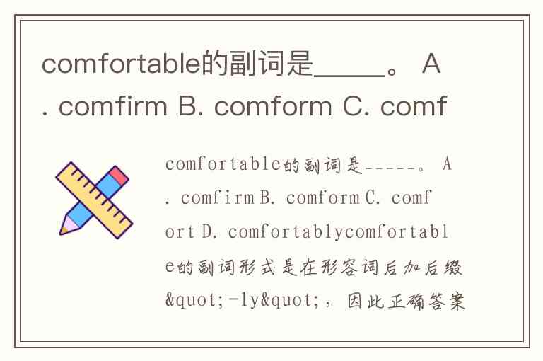 comfortable的副词是_____。 A. comfirm B. comform C. comfort D. comfortably