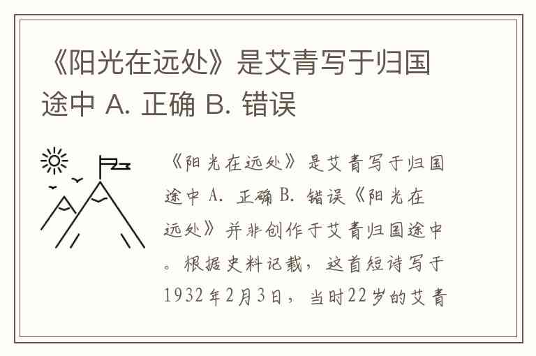 《阳光在远处》是艾青写于归国途中 A. 正确 B. 错误