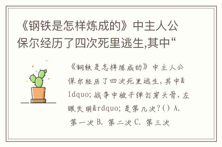 《钢铁是怎样炼成的》中主人公保尔经历了四次死里逃生,其中“战争中被子弹打穿头骨,左眼失明”是第几次?( ) A. 第一次 B. 第二次 C. 第三次 D. 第四次