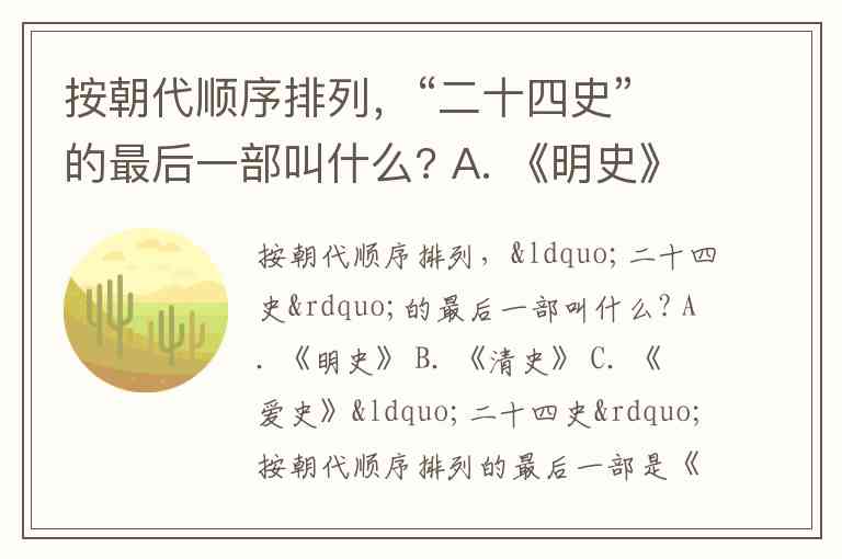 按朝代顺序排列,“二十四史”的最后一部叫什么? A. 《明史》 B. 《清史》 C. 《爱史》