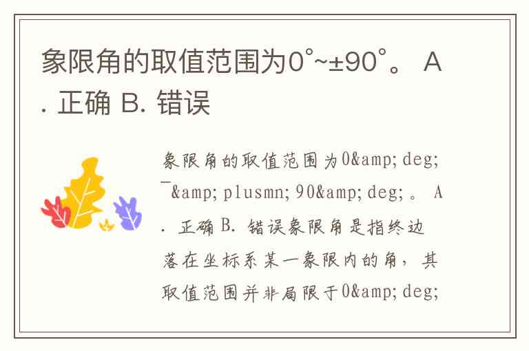 象限角的取值范围为0°~±90°。 A. 正确 B. 错误