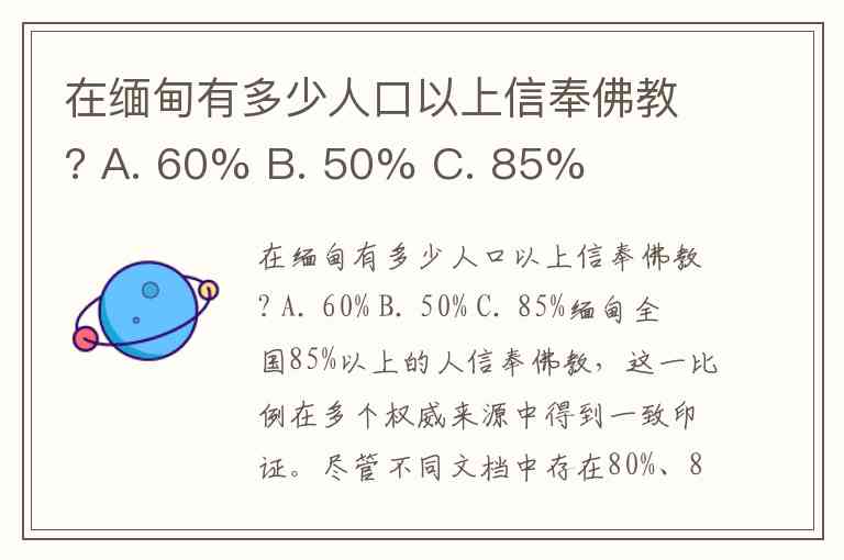 在缅甸有多少人口以上信奉佛教? A. 60% B. 50% C. 85%