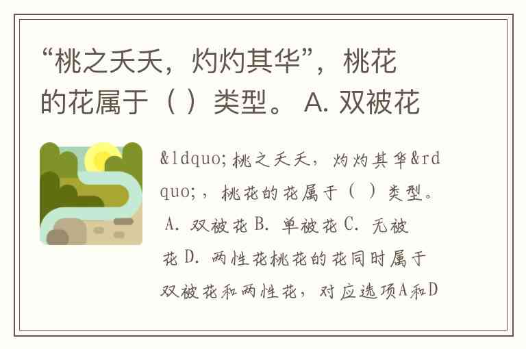 “桃之夭夭,灼灼其华”,桃花的花属于( )类型。 A. 双被花 B. 单被花 C. 无被花 D. 两性花