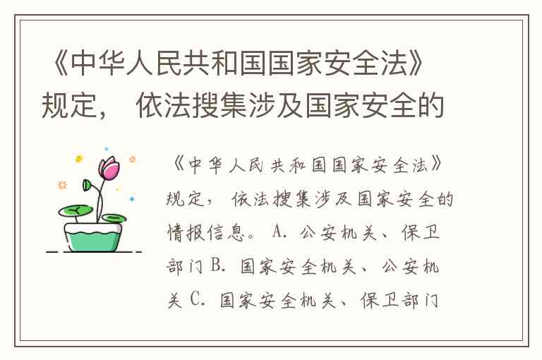 当我们在各类考试或普法宣传中遇到类似问题时,准确记忆法律条文的明确表述至关重要——国家安全的守护,既需要专门机关的专业作为,也离不开每个公民对法律法规的准确认知。