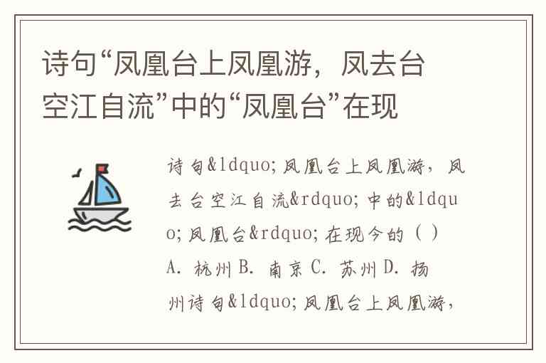 诗句“凤凰台上凤凰游,凤去台空江自流”中的“凤凰台”在现今的() A. 杭州 B. 南京 C. 苏州 D. 扬州