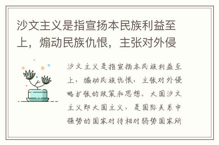 B项二战德国的种族灭绝政策属于极端民族沙文主义,其核心是宣扬本民族优越论并通过暴力征服其他民族,但这一行为主要发生在战争期间的种族压迫,而非国际关系中大国对小国的不平等对待。